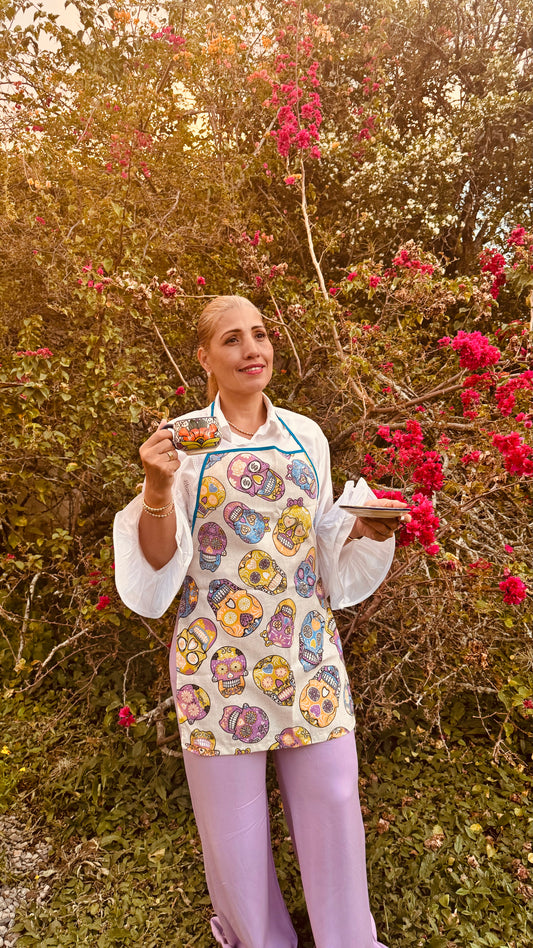 Delantal cráneos color pastel
